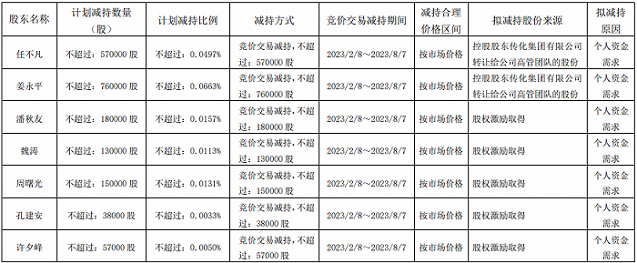 新安股份1月9日公告,因个人资金需求,任不凡等高级管理人员计划自公告发布之日起的十五个交易日后至未来6个月内,通过集中竞价方式合计减持不超过188.50万股,减持股份占公司总股本比例不超过0.1645%,减持价格将按照减持实施时的市场价格确定。截至公告披露日,高级管理人员合计持有公司股份920.67万股,占公司总股本比例为0.8036%。