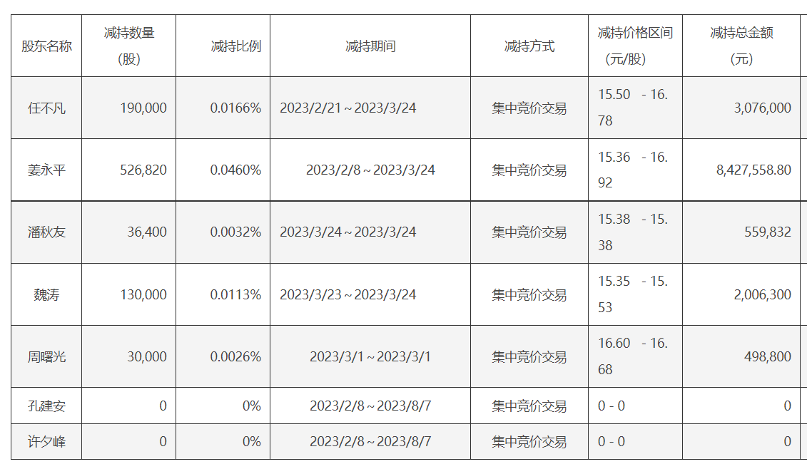 2023年8月7日,新安股份(600596.SH)发布公告,截至本公告披露日,公司本次实施减持计划高级管理人员通过集中竞价方式累计减持公司股份91.3220万股,占公司总股本的0.0797%,本次减持计划期限届满。