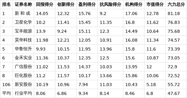 从所属行业角度来看,在申万一级基础化工行业的428家上市公司中,新安股份位列行业第106位,行业平均分为47.67分,显示出公司在行业内的领先地位。