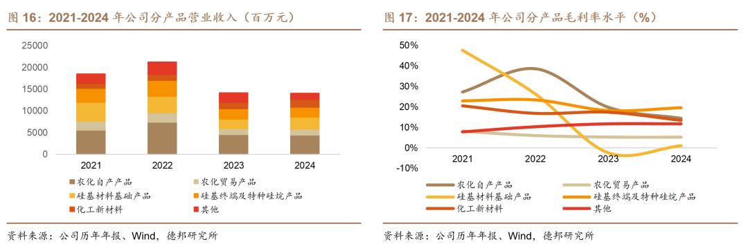 终端子公司经营稳健,承托公司业绩底线。公司是国内唯一下游终端产品全覆盖的企业,品类超3000种。在基础端业务同质化竞争激烈的背景下,公司持续深化终端化的战略重心,提高中高端产品比重,2024年实现有机硅终端营收23.58亿元,利润总额2.82亿元,经营表现韧性十足,或有力承托了公司业绩底线。