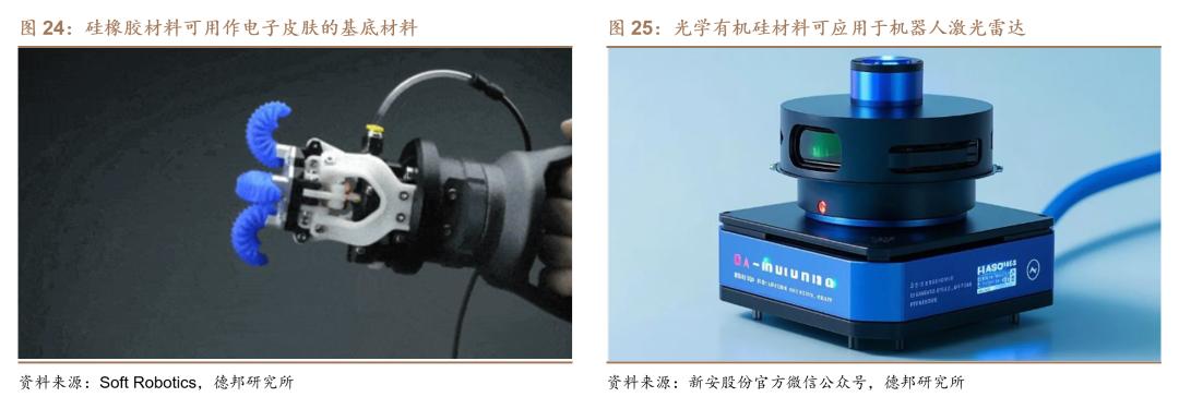 人形机器人适配有机硅材料,公司已有成体系解决方案。有机硅拥有柔软亲肤、生物相容性以及宽温度范围耐受性、耐候性、电绝缘性、耐辐射性等特点,被广泛认为是适合机器人应用的软质高分子材料。公司针对机器人应用场景,在仿生系统、感知系统、控制系统、驱动系统、执行器和动力电池六大领域已初步形成解决方案,相关产品如超低硬度硅橡胶系列、光学有机硅材料、有机硅导热凝胶、电子灌封胶、阻尼硅橡胶、硅油冷却液等已实现产业化应用。2025年5月,公司与浙江人形机器人创新中心确定战略合作,共建机器人材料联合实验室。公司围绕机器人柔性抓取与智能触控两大核心课题,通过对肌肉组织的解构,设计出具有超高仿真性和轻量化的材料结构;同时基于智能触控和感知需求,开发出本体具有信号传输和触控功能的硅橡胶材料,并实现示范应用。