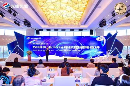 活动现场,光明乳业党委组织部部长、人力资源总监向现场学生介绍了2024年的光明乳业校园招聘计划,全方位展示了公司人才培养计划和职业发展路径,通过推出一系列实习和培训项目,助力他们在职场上更快成长。