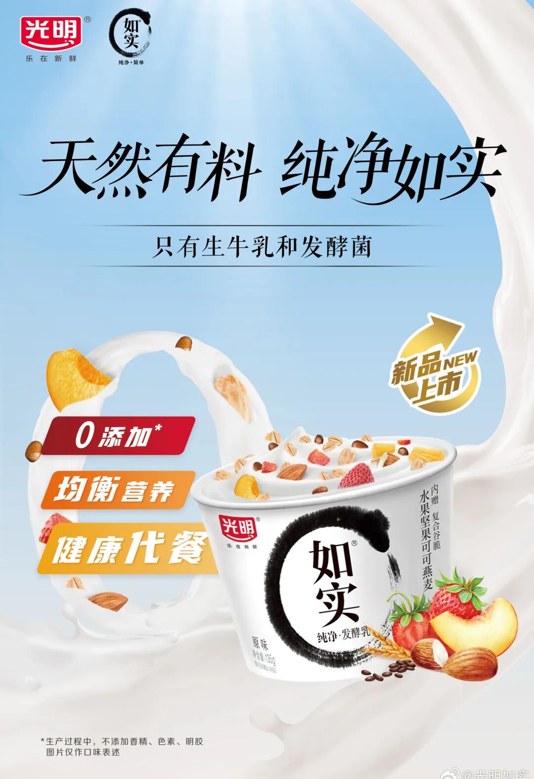 光明如实高蛋白纯净发酵乳以0添加配方满足消费者对高营养、高蛋白的需求,特别添加专利菌株长双歧杆菌 BD3150,有效抑制肠道致病菌,为肠道健康提供保障。