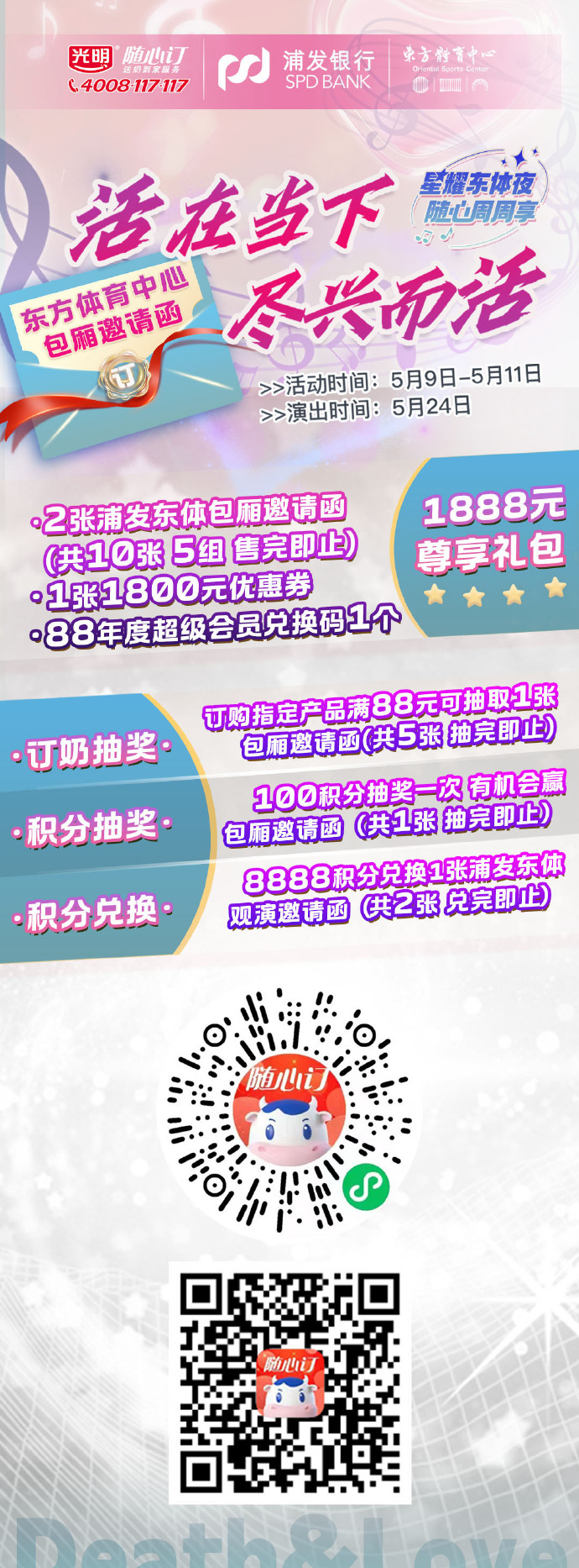 继携手“梅奔”、“浦发东体”,打造“梅奔星光夜”与“星耀东体夜”福利活动之后,光明随心订与上海体育馆再度携手合作。利用每周演唱会资源,深入各年龄层消费群体,刺激消费的同时也提升了生活愉悦感。