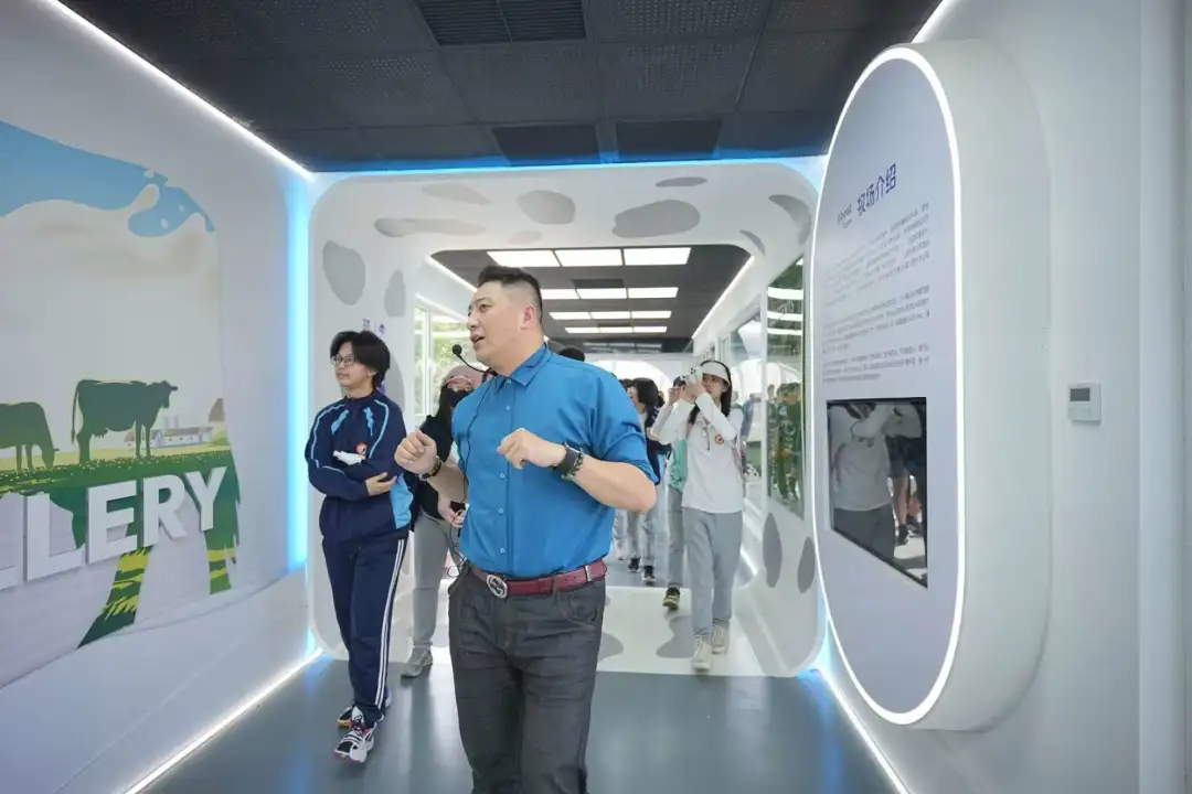 跟随着专业讲解师的脚步,研学团队穿越多媒体科普长廊,揭开牛奶的“诞生之谜”。