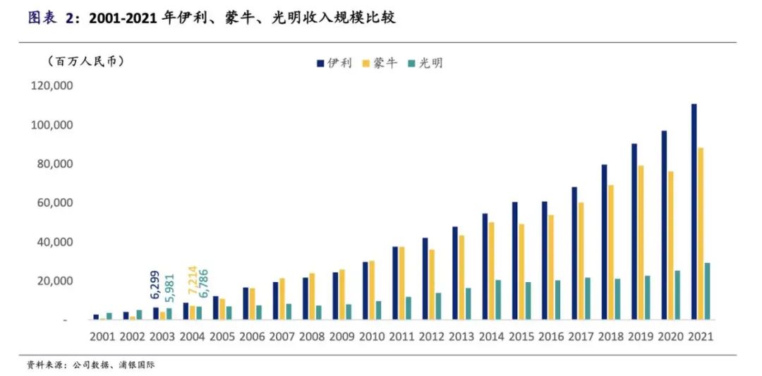 2002年,光明乳业成功登陆A股市场,业绩表现也几乎碾压伊利和蒙牛。