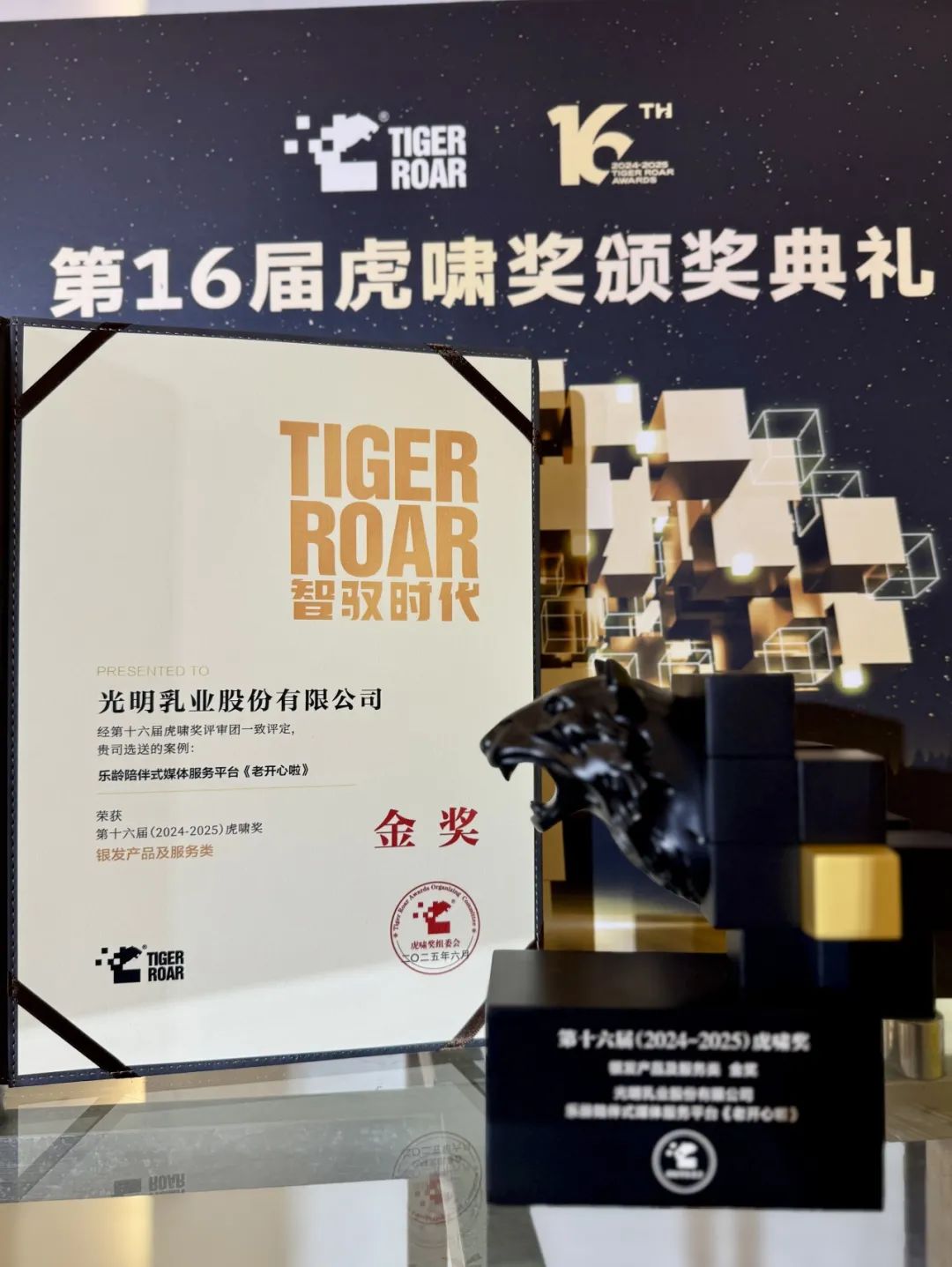 近日,以“智驭时代”为主题的2025虎啸盛典暨第16届虎啸奖颁奖典礼在上海举行。光明乳业凭借与江苏广电总台深度合作的乐龄陪伴式媒体服务平台《老开心啦》,实力荣获本届虎啸奖首次设立的“银发产品及服务类”金奖。