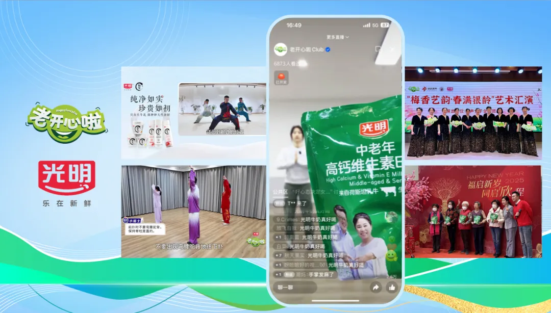 在节目直播间,光明乳业创新设计了“光明牛奶真好喝”等口令福袋活动,单场直播参与人数超7000,将“光明中老年高钙维生素E奶粉”深刻打入银发用户的心智。