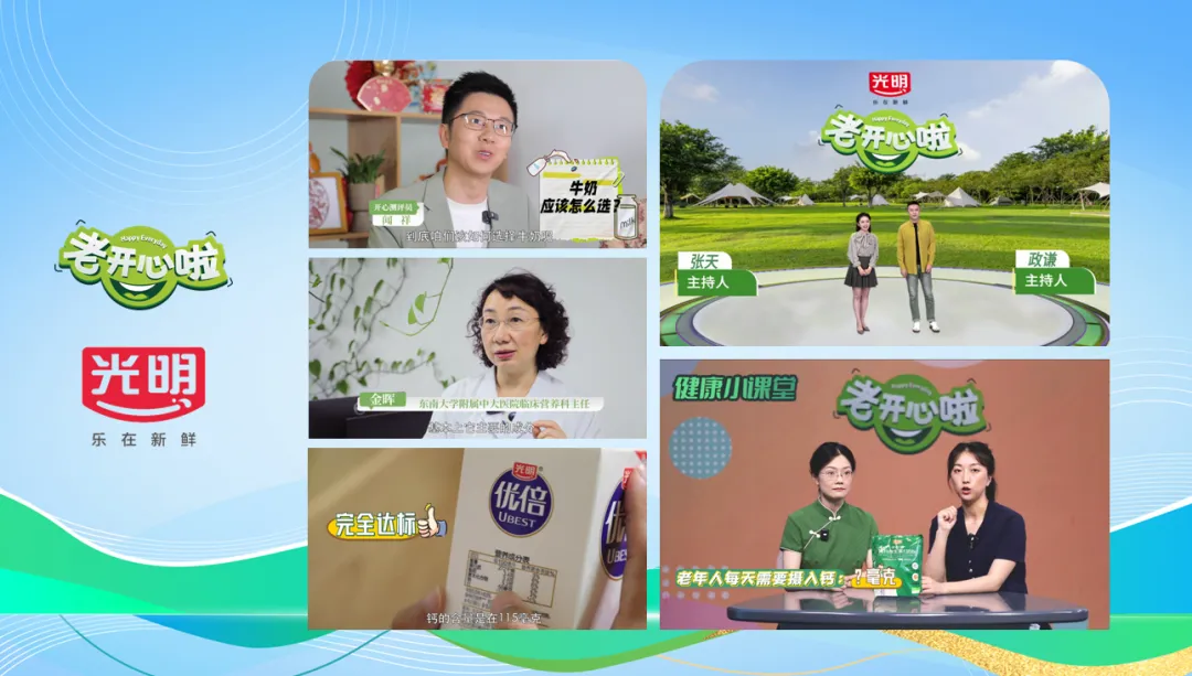 光明乳业敏锐捕捉中老年群体对健康、陪伴的核心需求,深度洞察银发垂类领域中具备流量潜力的内容风向,从专家课堂、线上直播、适老活动等角度全方位融入并覆盖节目之中,悉心打造了一系列适老内容板块,更以自身产品势能,助力银发族提升生活品质,并引领行业适老化服务的创新方向。