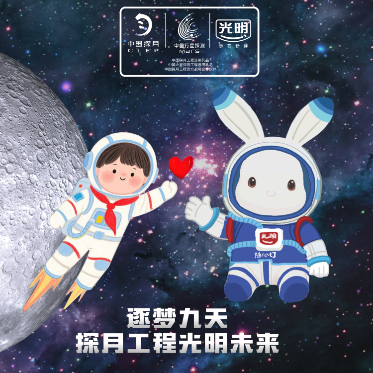 从黄浦江畔到月球背面,从乳品车间到千家万户的餐桌,光明乳业用十八年的坚守证明:真正的企业担当,既要像探月工程那样仰望星空,更要如乳业初心一般脚踏实地。未来,光明乳业将继续秉持“探月品质”,不断深化与中国探月工程的合作,在科研创新与公益实践的道路上持续前行,用每一款高品质乳品守护国民健康,用每一次公益行动传递社会温暖,让“光明力量”与航天梦想共同闪耀。