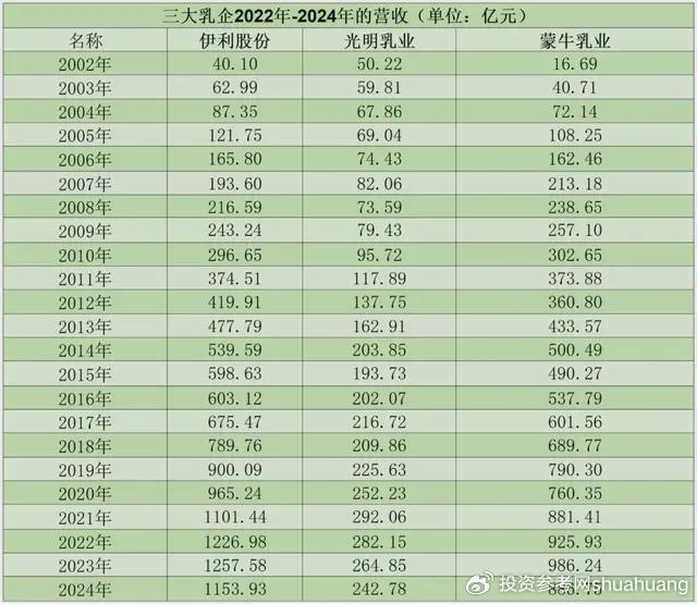 回溯光明乳业的历史,高光时刻仍历历在目。2002年,它以“国内乳业综合实力排名第一”的姿态登陆上交所,彼时实力远超蒙牛和伊利。但好景不长,上市仅两年,其营收就先后被伊利和蒙牛反超,且差距不断拉大。2005年,伊利和蒙牛营收双双破百亿,光明乳业仅为69.04亿;2011年,伊利和蒙牛营收突破300亿,光明乳业才首次破百亿。十余载过去,光明乳业始终未能迈过300亿营收大关,最高停留在2021年的292.06亿元,而同期伊利已达1101.44亿,蒙牛达881.41亿。2022年以来,光明乳业营收连续三年下滑,跌幅持续扩大,2025年一季度营收63.68亿元,同比仍下降0.76%,与300亿的目标渐行渐远。