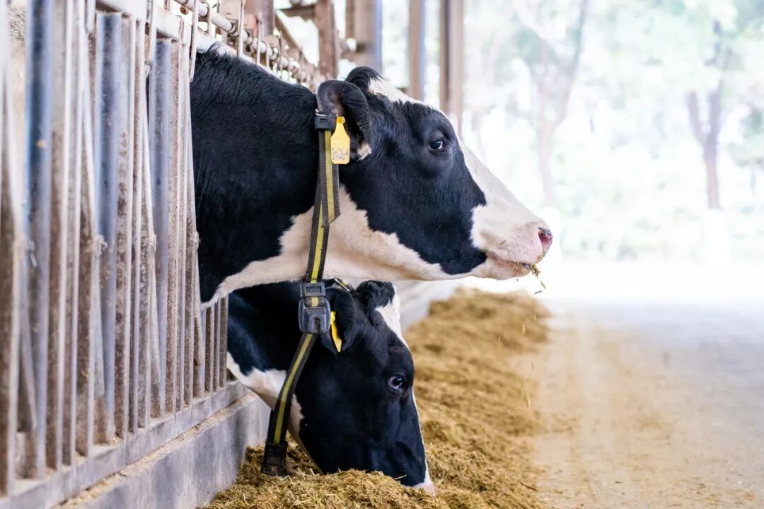 光明乳业旗下牧场建设了完备的育种管理系统,从源头把控每一滴新鲜。每只奶牛均佩戴智能耳标与穿戴设备,实时采集监测健康数据、生长环境与饮食情况,建立专属身份档案,实现奶牛养育全程数字化管控。