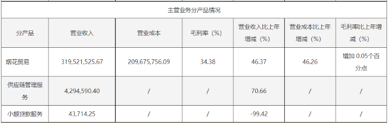 *ST熊猫的主营业务是各类烟花爆竹产品的出口贸易,具体经营模式包括贴牌和自营品牌的出口。作为A股老牌上市公司,*ST熊猫曾凭借烟花业务风光无限,但行业萎缩后,频繁跨界金融等热门领域。2024年,该公司的营业收入来自烟花贸易、供应链管理服务和小额贷款服务。