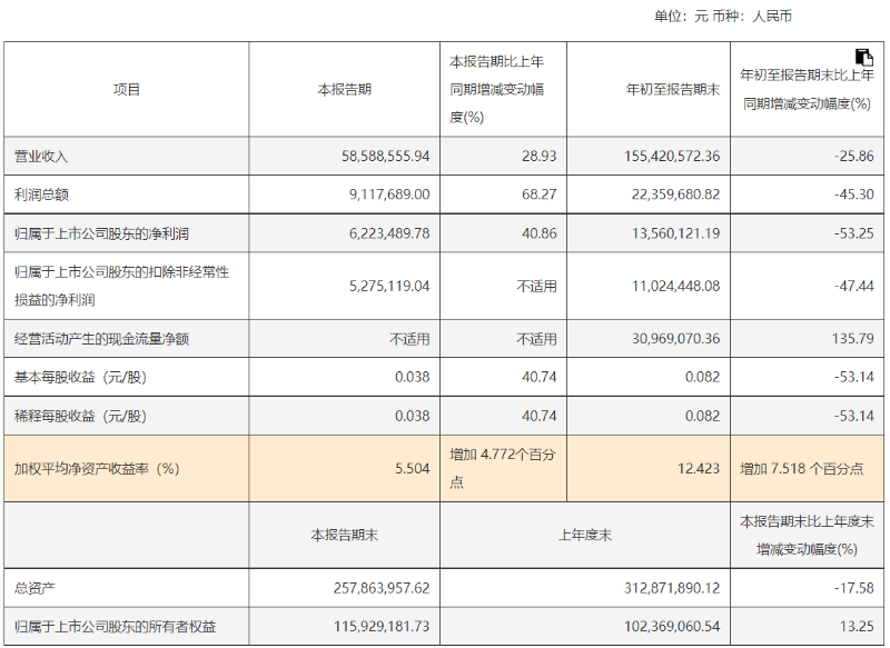 2025年1-9月份,*ST熊猫实现营业收入1.55亿元,同比下降25.86%;归属于上市公司股东净利润为1356.01万元,同比下降53.25%;归属于上市公司股东扣除非经营性损益的净利润为1102.44万元,同比下降47.44%。