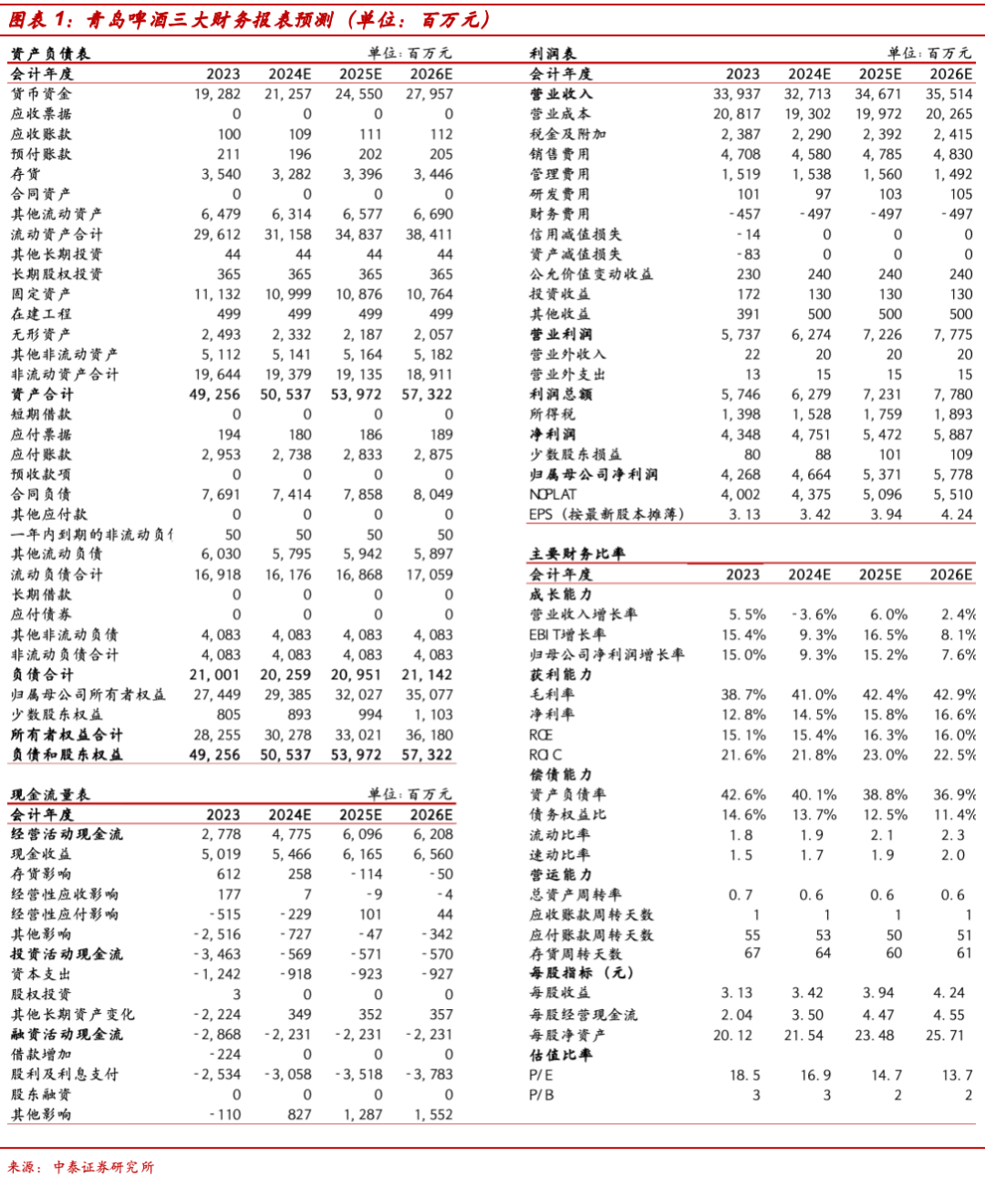 盈利预测:公司产品结构持续升级,青岛啤酒精品原浆、水晶纯生产品创新运作模式,推进新鲜直送,满足消费者“新鲜”“快速”的消费体验,上半年销量持续增长,产品已覆盖全国27个省市地区。同时上半年公司研发上市了“尼卡希白啤、全麦奥古特A6和奥古特A3、无醇白啤”等高端新产品。根据公司半年报,考虑到需求疲软,我们下调盈利预测,预计公司2024-2026年收入分别为327.13、346.71、355.14亿元(前值为351.36、363.86、376.64亿元),归母净利润分别为46.64、53.71、57.78亿元(前值为50.99、57.98、63.78亿元),EPS分别为3.42、3.94、4.24元,对应PE为16.9倍、14.7倍、13.7倍,维持“买入”评级。