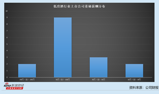 从薪酬来看,低度酒行业董秘薪酬主要集中在50万(含)-100万,占比为56%;100万(含)-200万有2名,占比13%;30万(含)-50万有3名,10万(含)-30万也有2名。