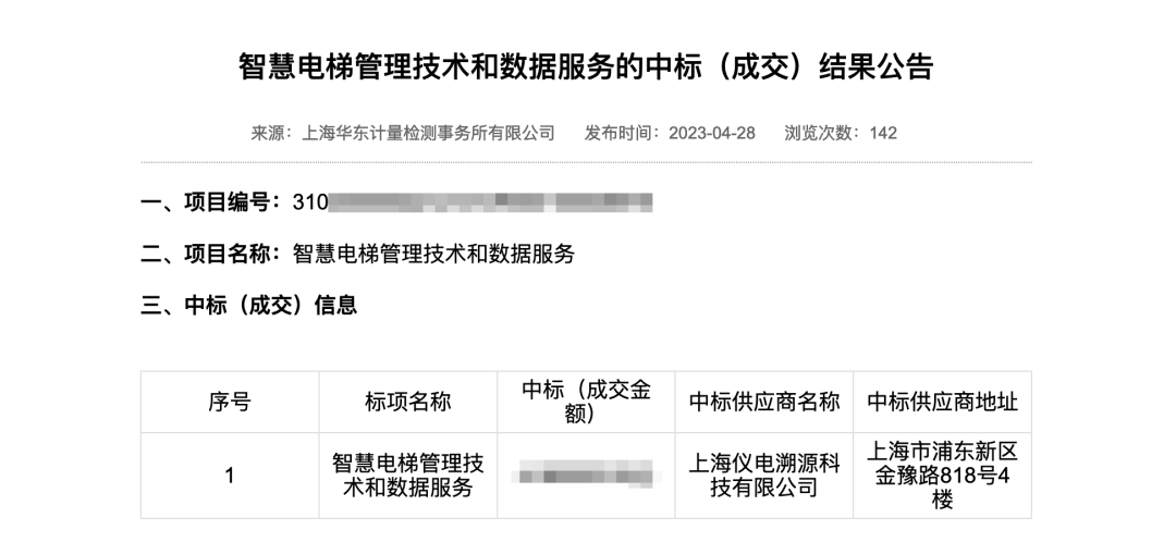 近日,上海市政府采购中心发布“智慧电梯管理技术和数据服务的中标(成交)结果公告”,上海仪电旗下云赛智联所属上海仪电溯源科技有限公司成功中标,这也是仪电溯源连续第五年中标上海市智慧电梯服务项目。