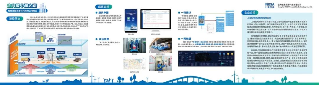 2013年,由市食安办牵头,市绿化市容局与市食药监局共同委托上海仪电进行“上海餐厨废弃油回收管理信息系统”相关研发和建设工作。截止2023年,已对上海4万余家产生油企业、18家回收油企业、1家处理油企业、以及300余家B5生物柴油加油站的所有餐厨废油相关行为和资源化利用进行实时、全程、闭环的监管,实现了对上海市餐厨废油产生、收运、初加工、末端处置和生物柴油销售全程的实时信息化管理,有效提升政府监管效能,基本达到了“应收尽收”、“应用尽用”的要求,有效防止了“地沟油”回流餐桌的风险,并推动餐厨废弃油脂资源化利用助力碳中和进程。