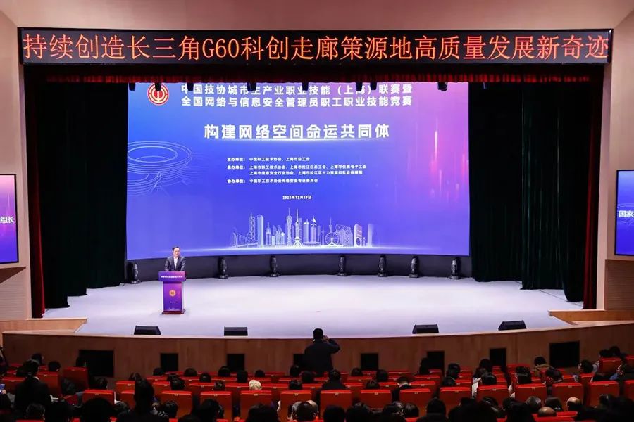 2023年12月19日,由中国职工技术协会和上海市总工会主办,上海市仪表电子工会等单位承办的中国技协城市主产业职业技能(上海)联赛暨全国网络与信息安全管理员职工职业技能竞赛决赛在上海市松江区工人文化宫举办。中国职工技术协会理事长、中华全国总工会原副主席、书记处书记李世明莅临,国家推进G60科创走廊建设专责小组副组长、长三角G60科创走廊联席会议执行主席、上海市松江区委书记程向民,上海市总工会党组书记、副主席黄红致辞,上海市仪表电子工会主席顾文出席开幕式。云赛智联积极支持本次大赛,派出仲裁、裁判、命题组人员及旗下多支企业队伍参赛,并承担了赛前培训工作。经过激烈角逐,旗下企业上海南洋万邦软件技术有限公司荣获一项团体三等奖及两项个人三等奖。
