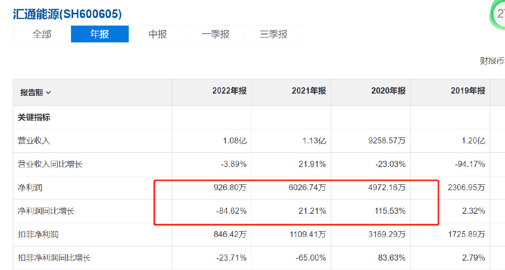 业绩也不能成为汇通能源上涨的理由。3月初,汇通能源发布2022年年报显示,去年其实现营收1.08亿元,同比下降3.89%;净利润926.8万元,同比大降84.62%。而且从净利润同比增长率来看,从2020年开始汇通能源就处于快速下滑中。