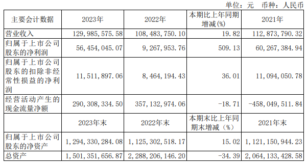 近日,汇通能源披露2023年年报。报告期内,公司实现营收1.3亿元,同比增长19.82%;归母净利润5645.4万元,同比增长509.13%;扣非净利润1151.19万元,同比增长36.01%。截至报告期末,公司净资产11.25亿元,较上年同期增长15.02%。