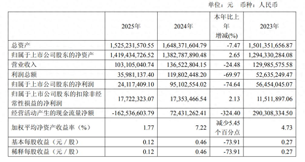 3月10日,汇通能源(600605.SH)披露2025年年度报告,报告期公司实现营收1.03亿元,同比下降24.48%;归属于上市公司股东的净利润2412万元,同比下降74.64%;扣非净利润1772万元,同比增长2.13%;基本每股收益0.12元。公司拟每10股派发现金股利0.4元(含税)。