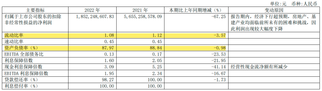 不过,绿地控股2022年还是在积极还债,全年有息负债净减少约231亿元。尽管资产负债率仍然高达87.97%,但总体也微降了一点。