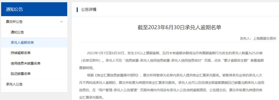 7月上旬,上海票据交易所曾发布了一份《截至2023年6月30日承兑人逾期名单》。