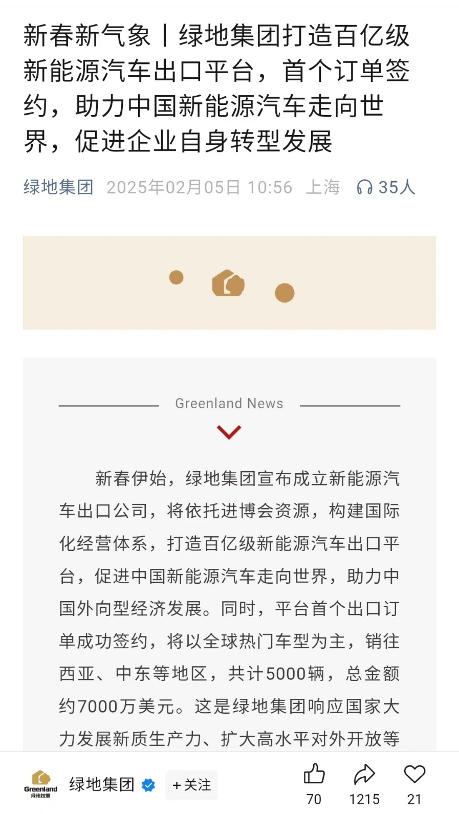 综上所述,绿地控股的“二次创业”之路充满了挑战和机遇。虽然汽车出口业务为公司提供了新的增长点,但要想真正实现持续性发展,还需要公司在品牌建设、市场营销、风险管理等多个方面做出更大的努力。