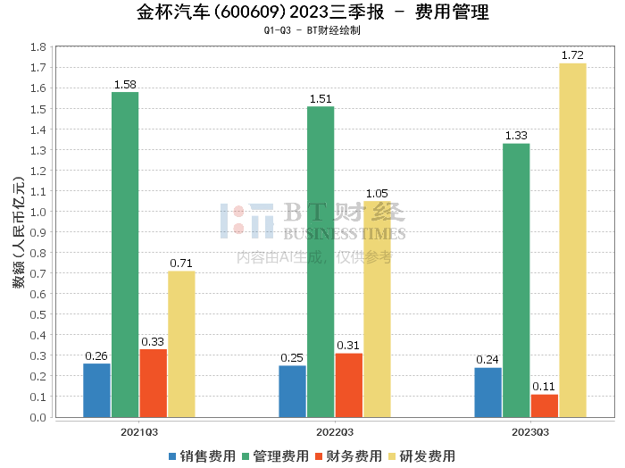 综合来看,金杯汽车在2023年三季度的经营状况呈现出净利润的显著增长和现金流的积极改善。尽管面临营业收入的下滑压力,但公司通过有效的成本控制和投资收益的增加,实现了利润的增长。此外,现金流的转正也为公司的日常运营和未来发展提供了更为稳健的财务支持。