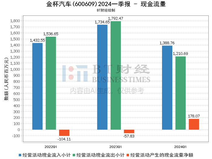 现金流量方面,金杯汽车本报告期经营活动产生的现金流量净额为1.78亿元,较上年同期的-57.83百万元有显著改善。这主要是由于公司支付的与经营活动相关的款项同比下降以及客户回款增加所致。经营活动现金流入小计为13.89亿元,同比下降19.94%;现金流出小计为12.11亿元,同比下降32.45%。尽管营业收入下降,但公司在现金流管理方面表现出色,确保了经营活动的正向现金流。