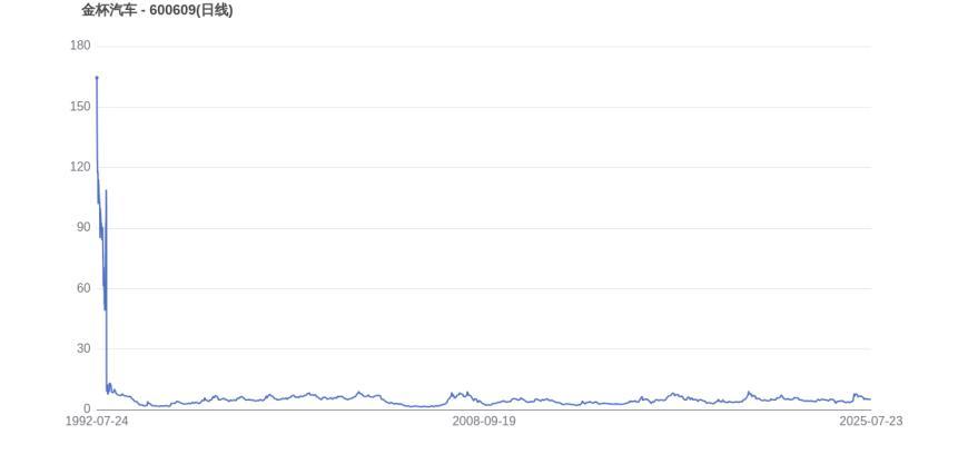 金杯汽车自1992年7月24日上市至今,已迎来33周年。从上市首日收盘价为164.5元、市值103.36亿元,到如今市值达到67.45亿元。
