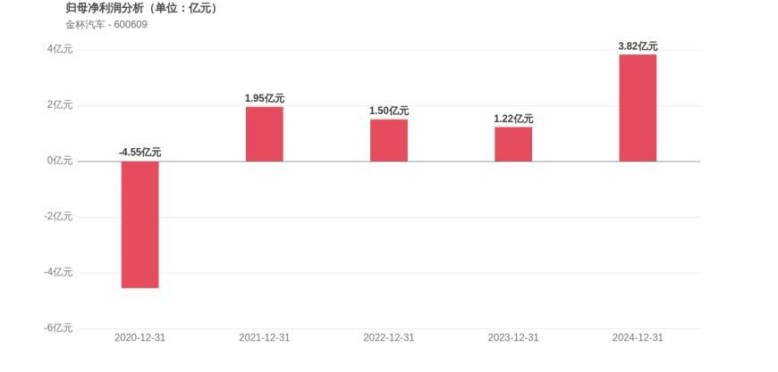 利润角度分析,2020年金杯汽车实现归母净利润-4.55亿元,2024年3.82亿元。公司盈利能力在近年出现明显改善,2024年归母净利润同比增长214.06%。