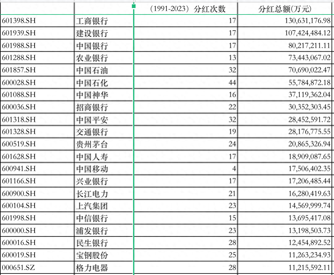 据统计,分红总额突破了千亿元的公司,共计有24家。