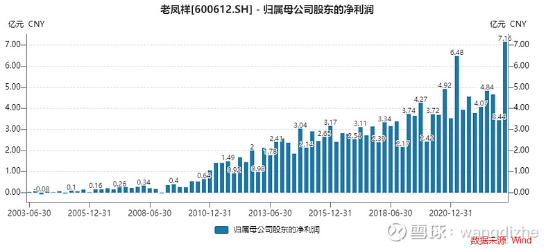 同时,老凤祥2010年借壳第一铅笔上市之后,再也没从二级市场融过资。。而且持续每年都分红。。。。一共5609家店,去年归母净利17亿元,也就是每家店每年为股东挣30.31万。。。总营收630.1亿元,也就是每家店每年营收额平均为1123.37万元。。。所以利润率大概27%。。。故而对于老凤祥这个生意,看毛利率的话7.58%,净利率不过3.6%,但其实那些都是虚化的,因为老凤祥的生意中,8成的成本是卖给加盟店的黄金,这个成本本质上是一个“过桥成本”,如果仅算黄金加工成本的话,其实毛利率是超过50%的,所以对于财报分析而言,要看的细致,更要理解生意的本质,同时这也再次说明“加权roe扫描的优势”。。。