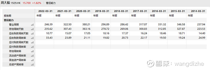 快速周转,是老凤祥整个经营战略的核心,营业周期仅仅90天左右,而周大福是接近250天,周大生是大概150天,所以老凤祥生意的流转速度,优势明显。