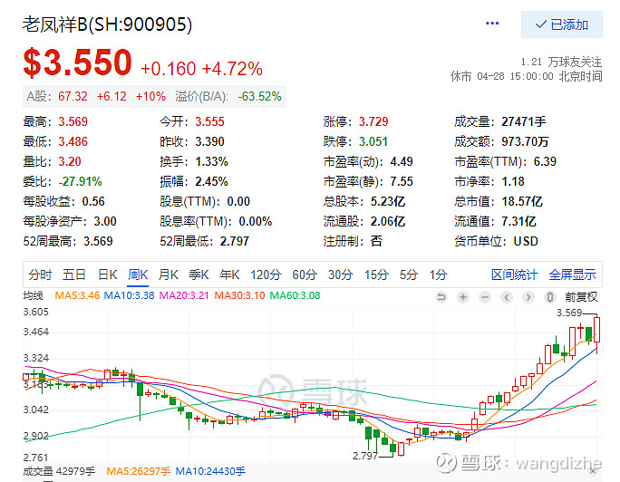我其实当然也看了周大福的情况,一共7400家门店,直营模式为主,1570亿港币,人民币1382亿人民币,股息率3.18%。。。远没有老凤祥b有优势,因为老凤祥b市值为18.57亿美元,合人民币128亿元,股息率7%。。。