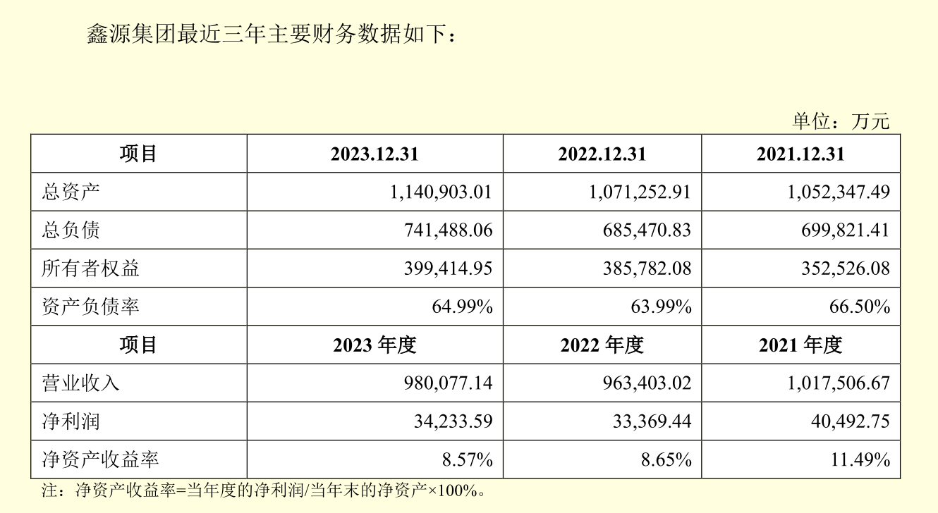 东方鑫源财报数据显示,2021年—2023年公司总资产分别为105亿、107亿、114亿元,营业收入101亿、96亿、98亿元,净利润4.05亿、3.34亿、3.42亿元。