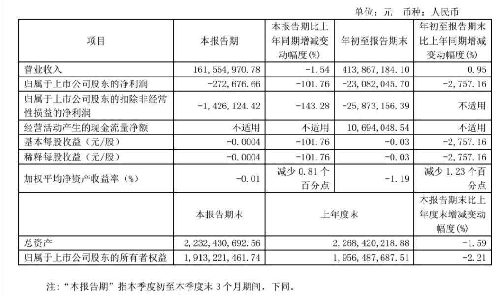 其中,第三季度营业收入为1.62亿元,同比下降1.54%;归属于上市公司股东的净利润为-27.27万元,同比下降101.76%。