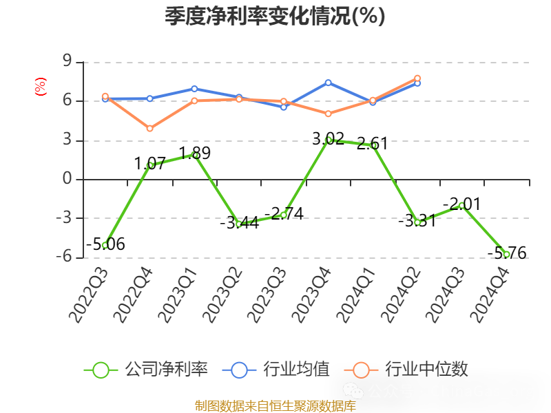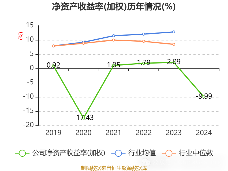 数据显示,2024年公司加权平均净资产收益率为-9.99%,较上年同期下降12.08个百分点。公司2024年投入资本回报率为2.51%,较上年同期上升1.3个百分点。