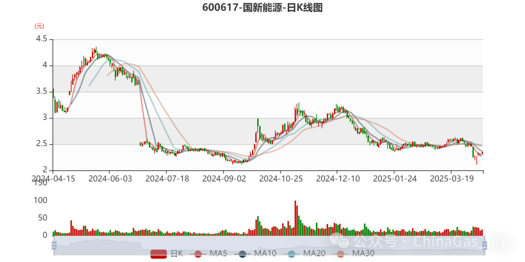 资料显示,公司主要业务有新能源企业的经营管理及相关咨询;天然气开发利用与咨询服务;燃气经营:天然气、乙醇的销售管道输送服务;储气设施租赁服务;集中供热项目的开发、建设、经营、管理、供热系统技术咨询及维修;天然气灶具、仪器仪表设备的生产、加工、销售;信息技术开发与咨询服务;进出口:上述经营项目的进出口业务。