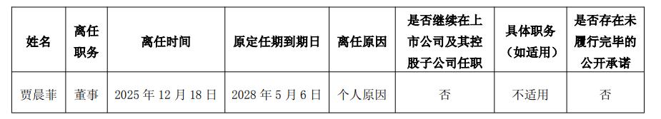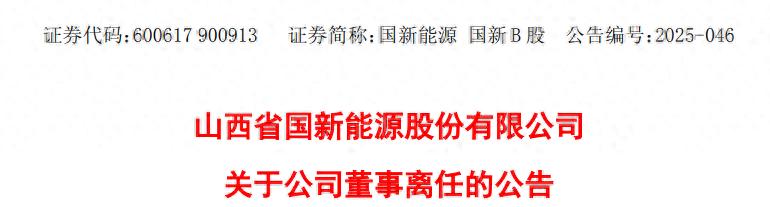 公告显示,山西省国新能源股份有限公司董事会近日收到董事贾晨菲提交的书面辞职报告。因个人原因,贾晨菲申请辞去公司第十一届董事会董事职务,辞职报告自送达董事会之日起生效,原定任期到期日为 2028 年 5 月 6 日,离任后不再继续在上市公司及其控股子公司任职。