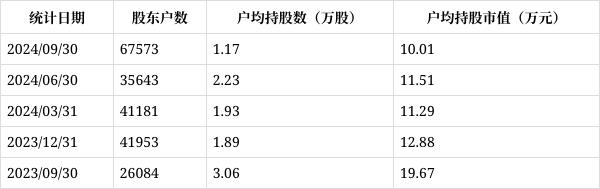 从10月31日公开信息显示,海立股份截至2024年9月30日公司股东户数为6.76万户,较上期(2024年6月30日)增加3.19万户,增幅为89.58%,持股趋于分散。