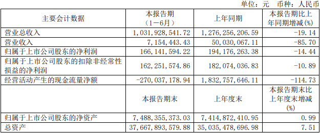 华鑫股份表示,营业收入本期较上期减少85.70%,主要为金陵投资上期纳入合并范围,本期不再纳入合并范围;经营活动产生的现金流量净额本期较上期减少114.73%,主要为本报告期内融出资金净流入减少、客户资金本期为净流出上期为净流入。