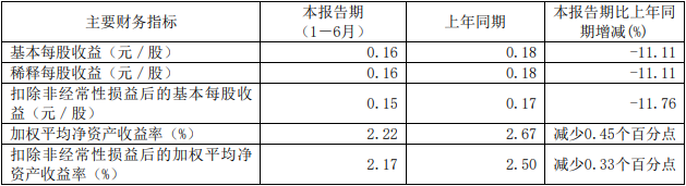 2023年上半年,华鑫股份基本每股收益为0.16元/股,同比下降11.11%;加权平均净资产收益率为2.22%,较上年同期减少0.45个百分点。