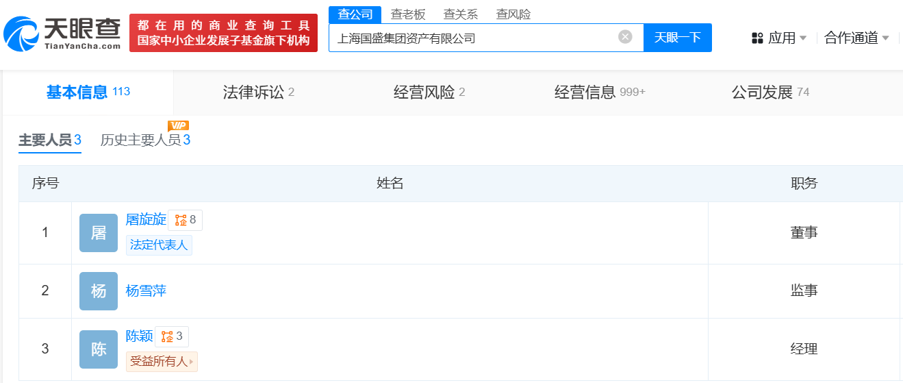 目前,上海国盛集团资产有限公司法定代表人已变更为屠旋旋,受益人所有人为陈颖。