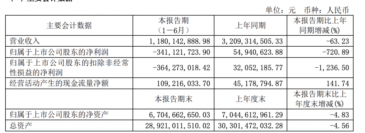 2023年上半年,光大嘉宝实现营业收入11.8亿元,同比下降63.23%;实现归属于上市公司股东的净利润-3.41亿元,同比由盈转亏。