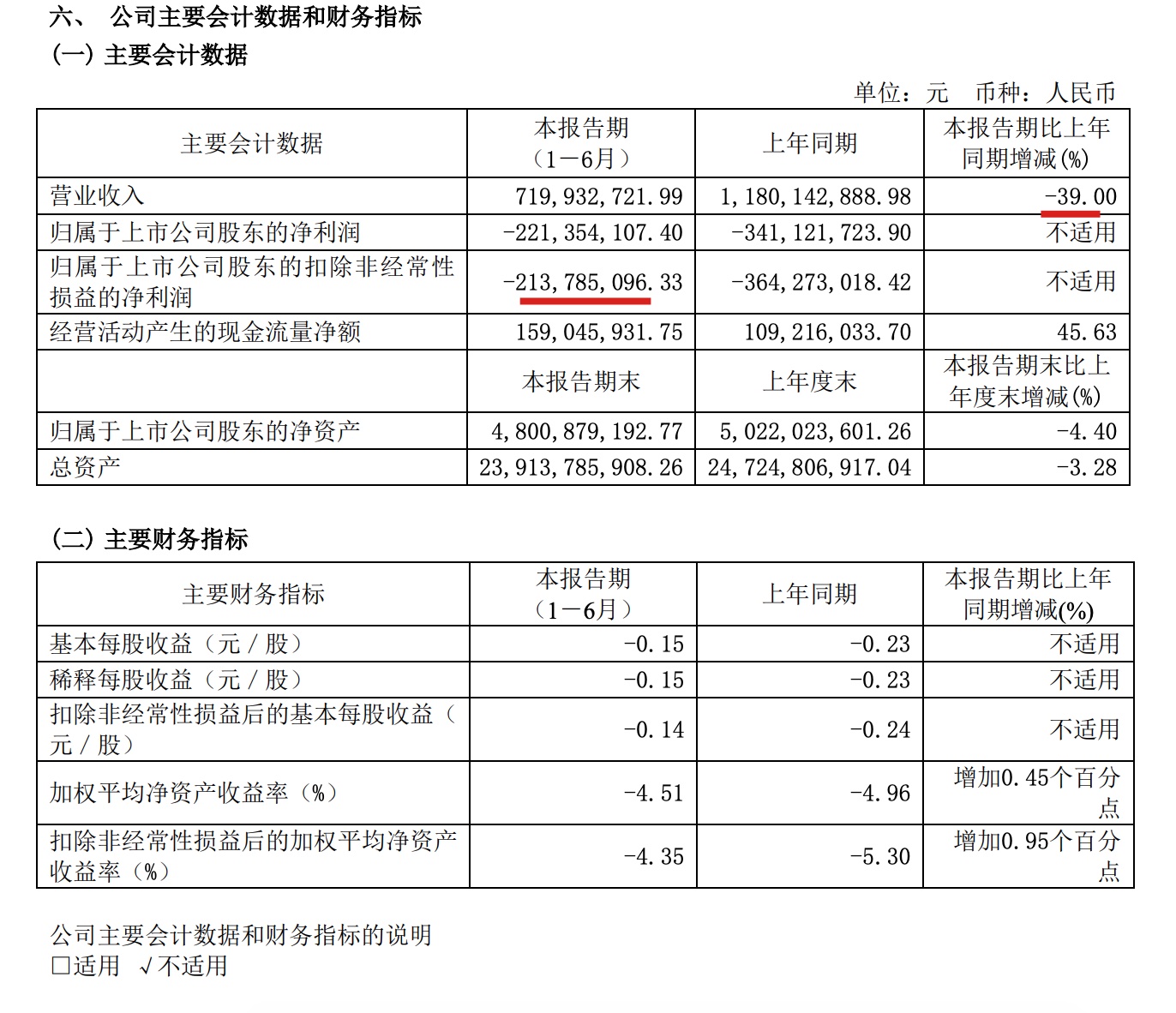 公告披露,报告期内,光大嘉宝营业收入为7.20亿元,较上年同期减少39.00%;归属于上市公司股东的净亏损为2.21亿元。经营活动产生的现金流量净额为1.59亿元,较上年同期增加45.63%。加权平均净资产收益率为-4.51%,基本每股收益和稀释每股收益均为-0.15元。