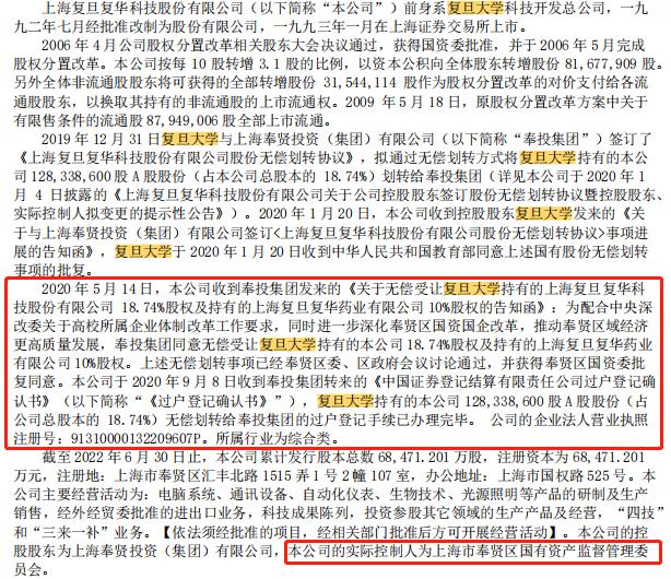 不过金融界发现,复旦复华虽然前身系复旦大学科技开发总公司,但在校企改革的进程中,复旦复华这个曾经的高校第一股便于2020年“易主”地方国资,不再归属复旦大学。