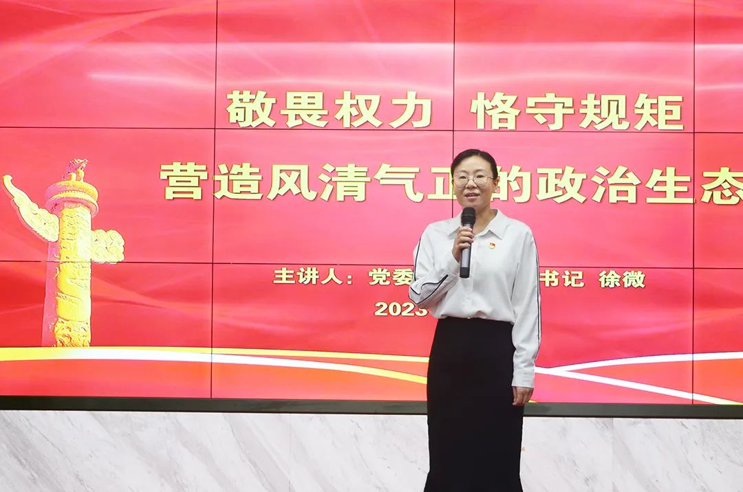 徐微书记为大家解读了《中华人民共和国监察法》以及刑法的部分罪名,剖析违纪违法典型案例,以案为鉴、敲响警钟,透彻分析了违纪违法行为带来的严重后果,进一步引导全体党员筑牢纪律规矩意识,严格职业操守,强化权力监督制约,着力营造风清气正的政治生态和干事创业的良好环境。
